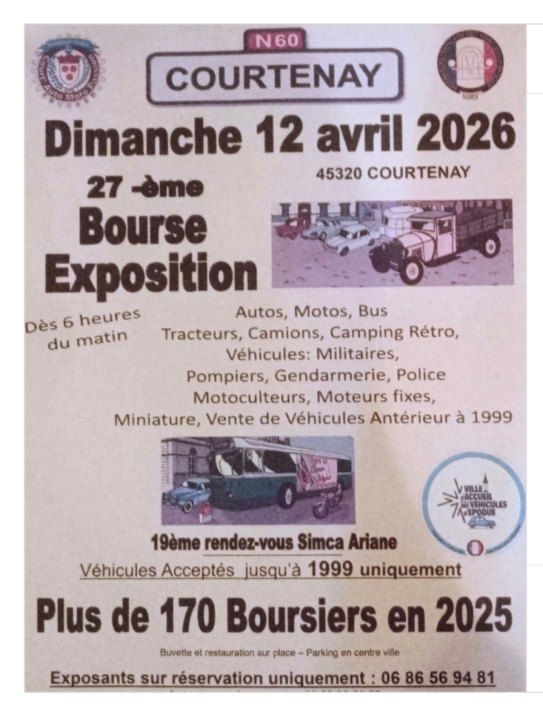 27ème bourse exposition à Courtenay (45) le 12 avril 2026 Evénement non organisé par le RCCF. 1 mars 2026 10 h 43 min0026Vues PARTAGEZ Evénement non organisé par le RCCF.